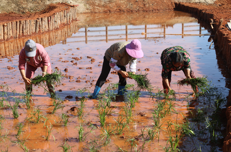 Villagers from surrounding communities engage in wetland construction around Poyang Lake.
